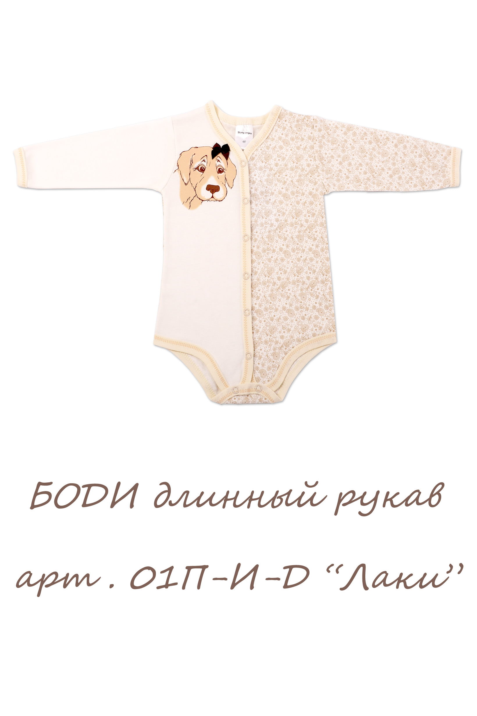 Боди с длинным рукавом для девочки, оформлено гипоаллергенным водным принтом в виде собачки. Изготовлено из трикотажного полотна высшего качества. Удобное расположение кнопок для переодевания малыша. Состав 100% хлопок. Рекомендиции по уходу: стирать при 40 С, гладить при средней температуре, носить с удовольствием.