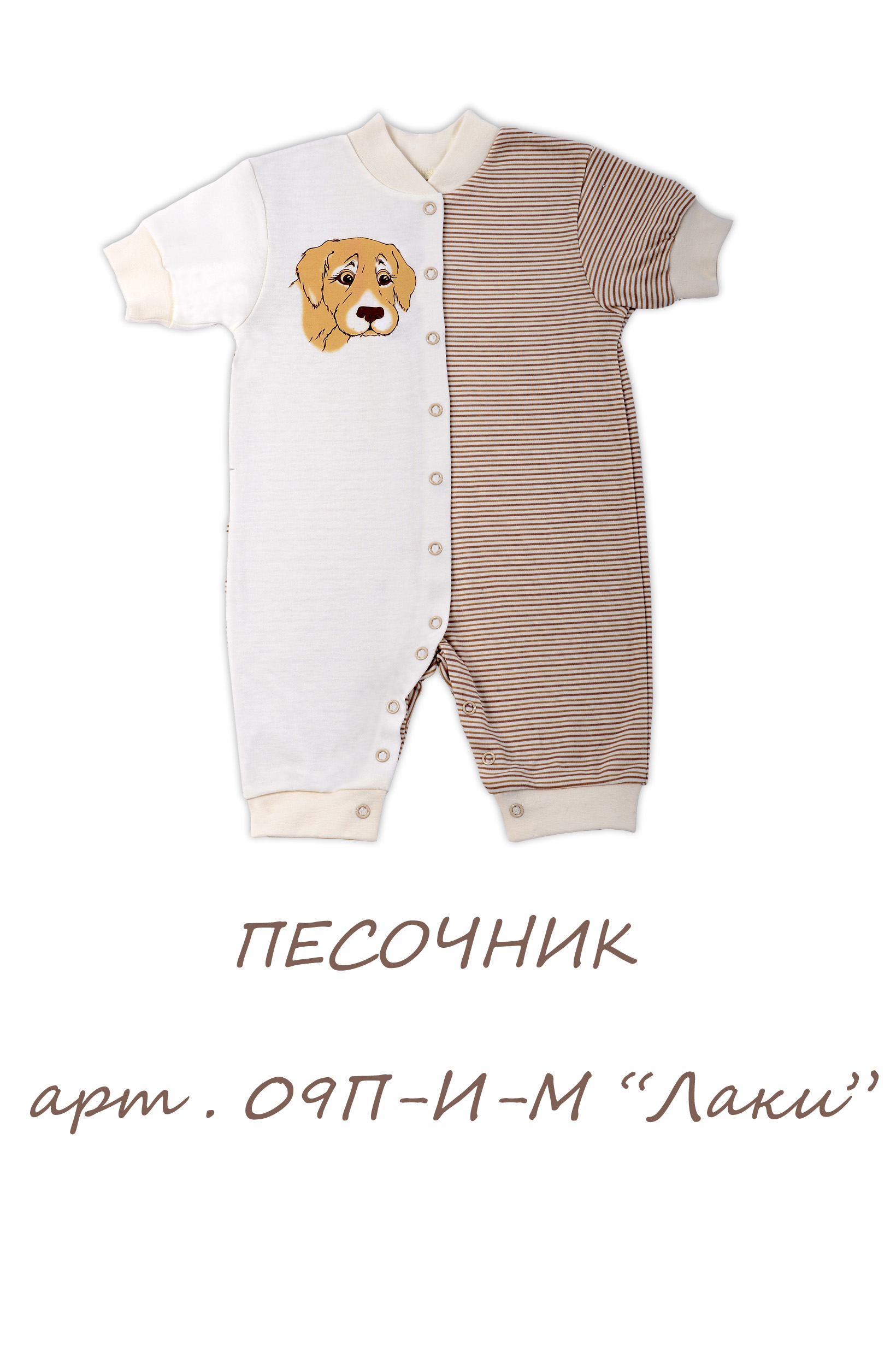 Песочник для мальчика, оформлен гипоаллергенным водным принтом в виде собачки. Изготовлен из трикотажного полотна высшего качества. Удобное расположение кнопок для переодевания малыша. Состав 100% хлопок. Рекомендиции по уходу: стирать при 40 С, гладить при средней температуре, носить с удовольствием.