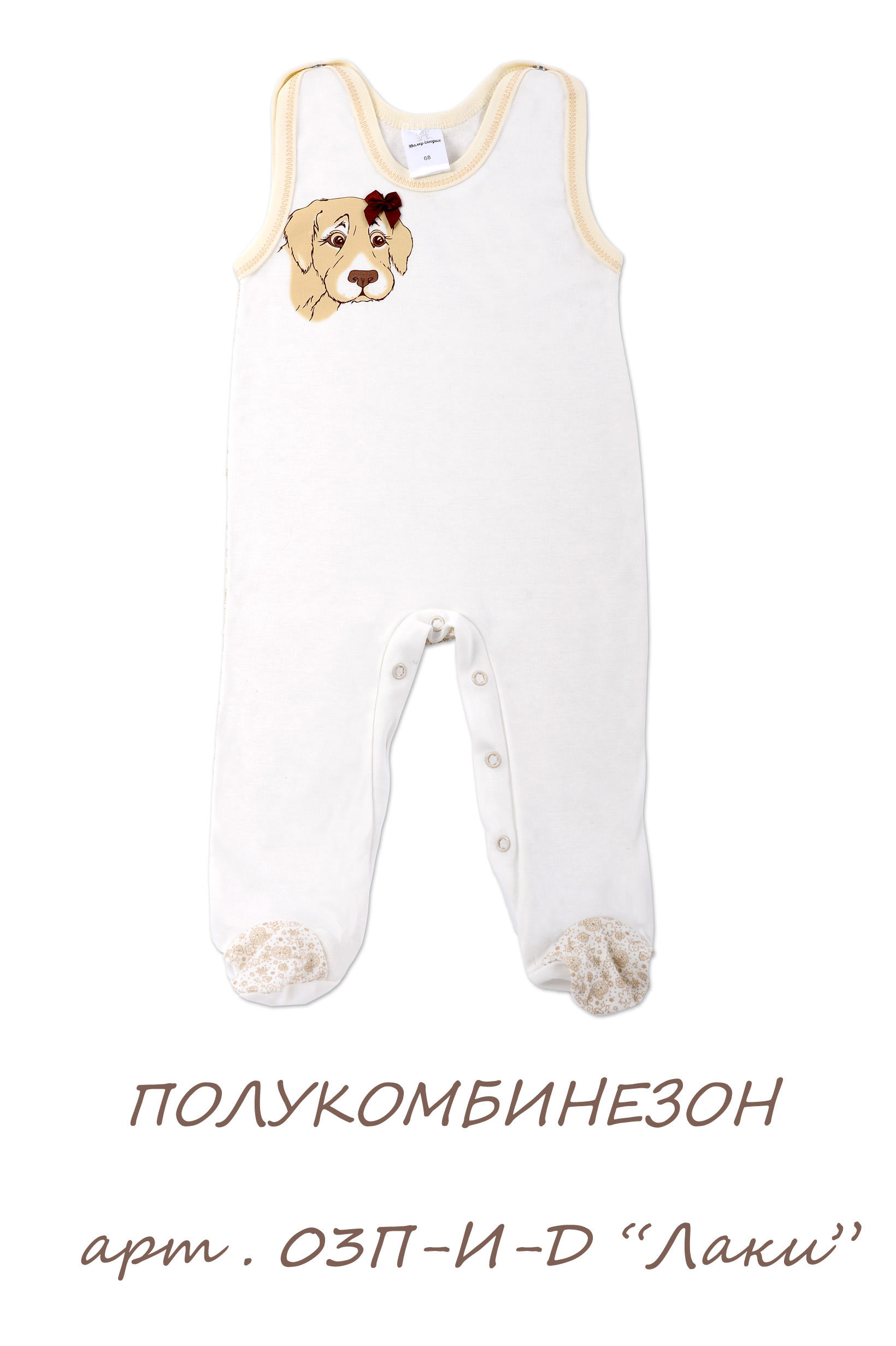 Полукомбинезон для девочки, оформлен гипоаллергенным водным принтов в виде собачки. Изготовлен из трикотажного полотна высшего качества. Удобное расположение кнопок для переодевания малыша. Состав 100% хлопок. Рекомендиции по уходу: стирать при 40 С, гладить при средней температуре, носить с удовольствием.